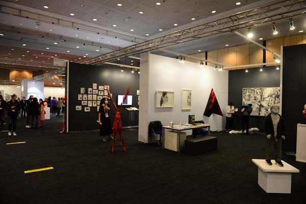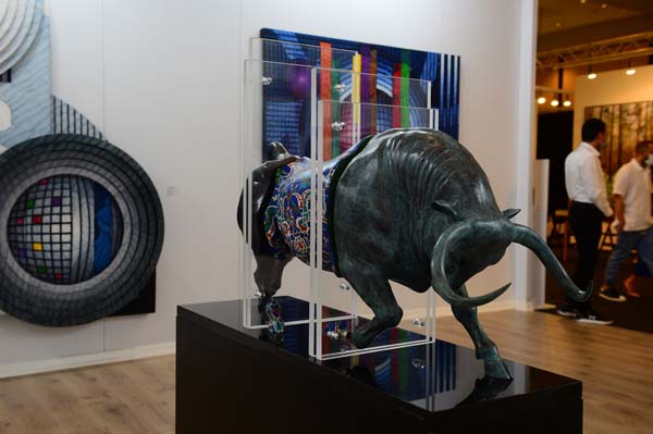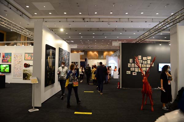Katılımcılar, stantları tek tek dolaşarak çağdaş sanat örneklerini yakından inceleme imkanı bulurken, galeri yetkilileri ve sanatçılardan eserler hakkında bilgi aldı.