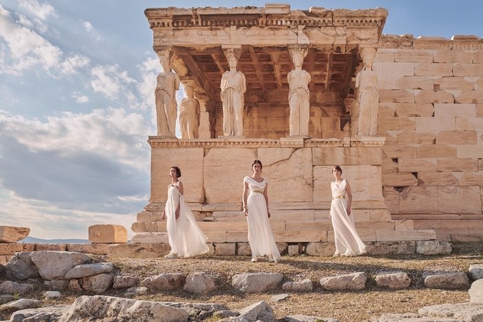 Dior Cruise 2022 koleksiyonu, Ria Mort'un Atina'daki Parthenon Tapınağı'nda çektiği fotoğraflarla Yunanistan'ın sonsuz güzelliğini kutluyor. Bu özel çekim ile, Mösyö Dior'un tasarladığı haute couture elbiselerin yetmiş yıl önce aynı noktada fotoğraflandığı ikonik çekime saygı duruşunda bulunuluyor. Maria Grazia Chiuri'nin mitolojik figürlerden ve antik peplosun rafine saflığından ilham alarak tasarladığı silüetler, bu tarihi bölgenin zenginliğini zamansız bir modernite anlayışıyla yansıtıyor. Yunan fotoğraf sanatçısının lensinden gördüğümüz, aralarında drape detaylı havadar elbiselerin ve parlak beyaz takımların olduğu Dior Cruise 2022 defilesi görünümleri, göz alıcı bir çağdaş destanla hayat buluyor.