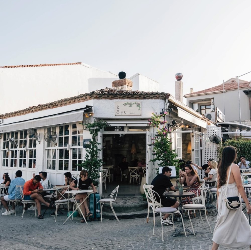 Öğle saatlerinde Alaçatı sokakları hareketlenmeye başlar. Küçük kafeler dolarken gölgeli masalarda sohbetler uzar. Köşe Kahve, bu saatlerde kısa bir mola vermek isteyenlerin en çok tercih ettiği mekanlardan biri.
