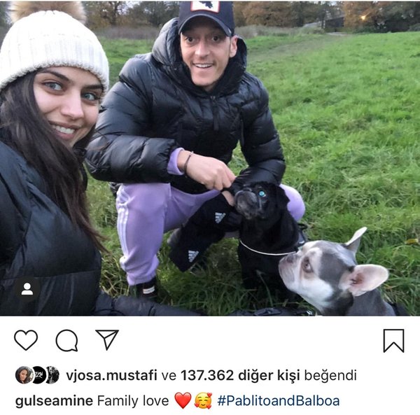 Mesut Özil, yeni yılı Amine Gülşe ile Londra'da karşılamış, köpekleri ile poz veren çift, fotoğrafın altına Türk bayrağı eklemişti. Mesut Özil ile eşi Amine Gülşe'nin bu fotoğrafı Instagram'da "Amine'nin karnı şiş, bebek yolda mı?" yorumlarına neden olmuştu. Amine ise bebek soruları karşısında sessiz kalmıştı.