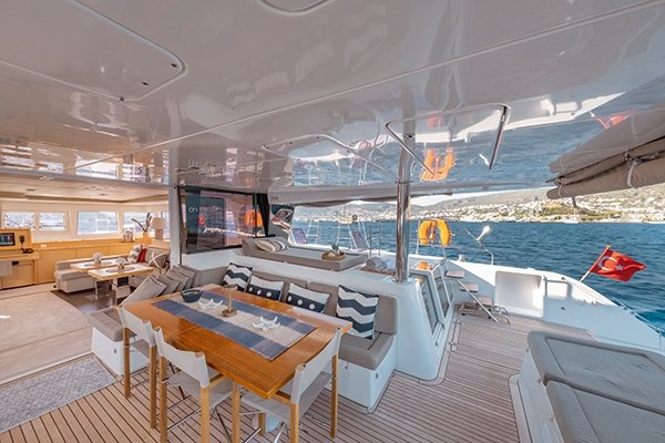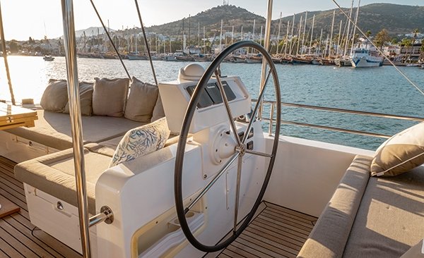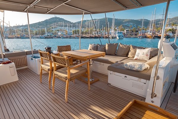 Evet, ben de seçimimle ilgili çok eleştiriler aldım. Orsası çok iyi değildir, tek gövde tekne 30-40 derecede orsası vardır gibi yorumlar oldu. Sonuçta katamaranın çok konforlu olması bende ağır bastı. 2010'da dört kabinli 45 ft bir Lagoon sipariş ettim. Fransa'da imal edildiği ve henüz dünya tanıtımı yapılmadığı için tekneyi göremedik. Eylül'de de Cannes'da fuar vardı. Tekneyi ilk orada görecek, beğenirsek alacaktık. Gittik, gördük ve tekneye aşık olduk.