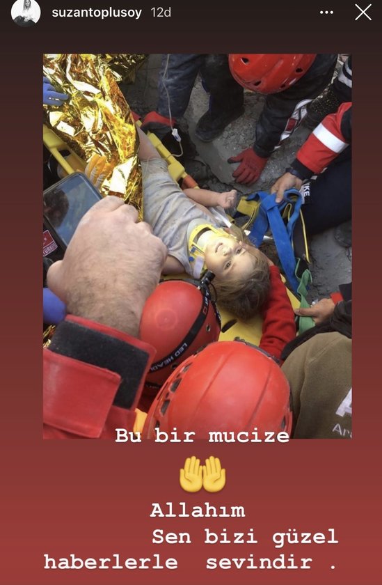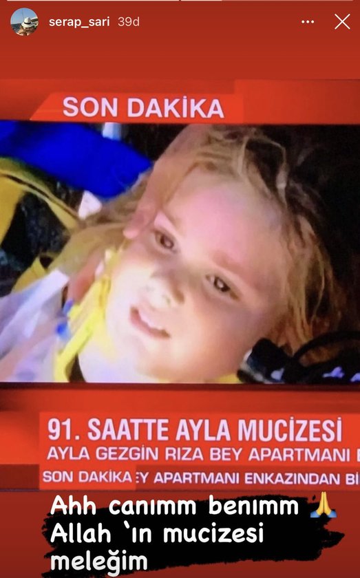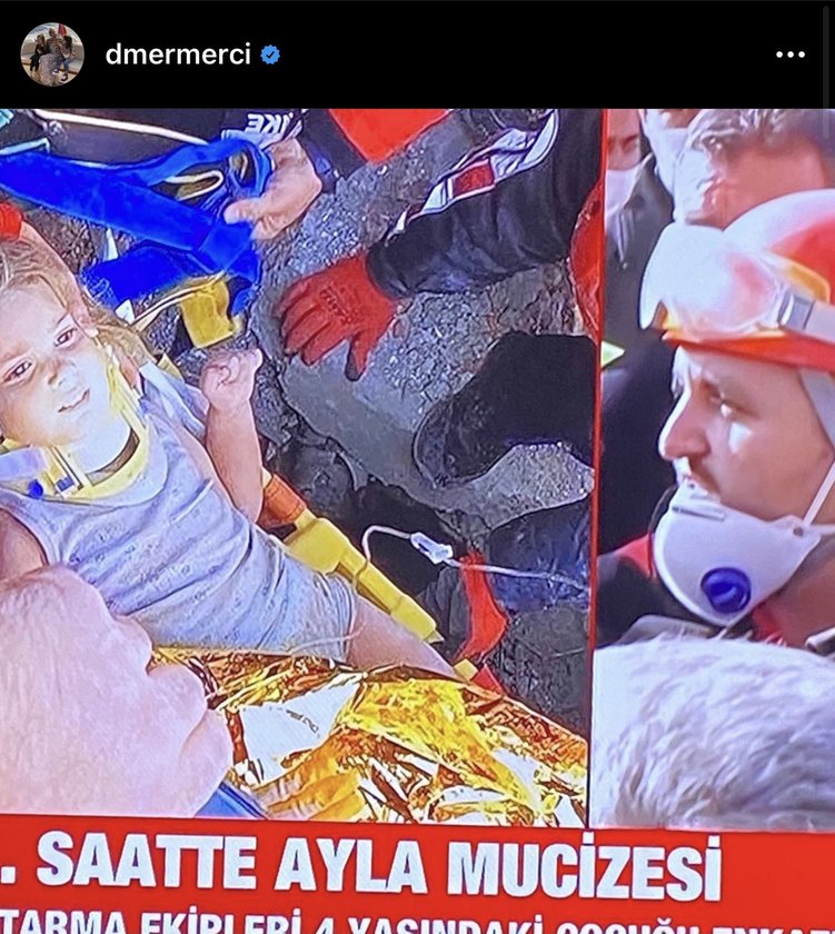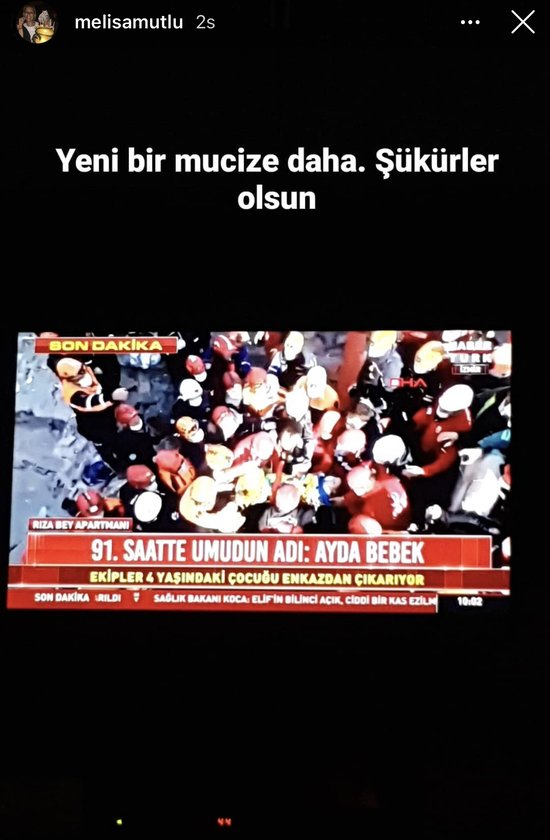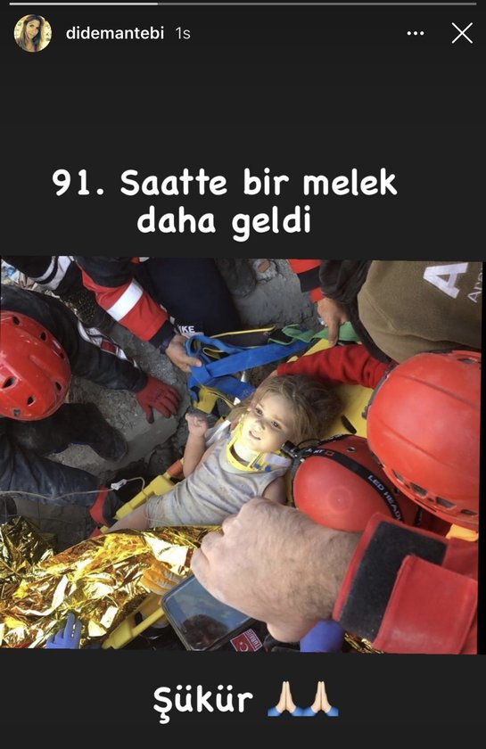 "91 saat sonra hayata dönen güzel Ayda bebek. Gerçek bir Mucize. Kurtarma ekiplerimize şükranla."