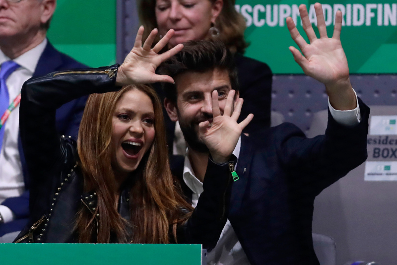 Barcelona'nın defans oyuncusu Gerard Pique ile Kolombiyalı ünlü şarkıcı Shakira, Madrid'te yapılan Davis Kupası tenis karşılaşmalarını tribünden izledi.