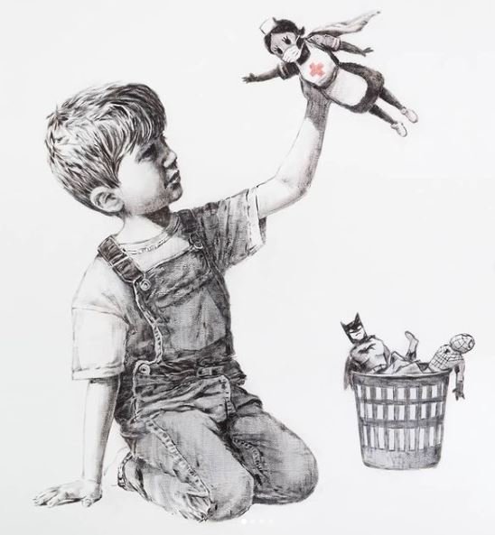 Dünyaca ünlü sokak sanatçısı Banksy'nin corona virüs salgınıyla mücadele döneminde sağlık çalışanları için teşekkür niteliğinde hazırladığı Game Changer (Çığır Açan) adlı eserin açık artırmada 2.5-3.5 milyon pound (26.5-37 milyon lira) arası bir fiyata alıcı bulması bekleniyor. Hastanenin acil bölümünde asılı olan tablo 23 Mart'ta açık artırmaya çıkacak ve elde edilen gelir Ulusal Sağlık Hizmetleri'ne fon olarak aktarılacak.