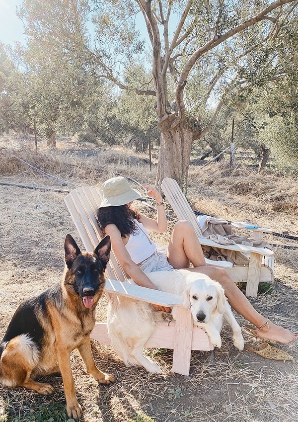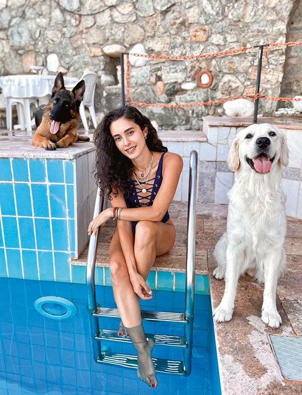 Köpeklerimiz Raw ve Berlin ailemizden gibiler, o yüzden onlardan ayrı geçirdiğimiz zamanlarda içimiz hep bir buruk oluyor ya da gözümüz arkada kalıyor. Onların enerjisi ve sevgisiyle besleniyoruz. Mutlu ve sosyal köpek olmaları bizim için çok önemli. Son iki senedir Cunda'da beraber kamp yapıyoruz ya da kendi yazlığımızda vakit geçiyoruz.