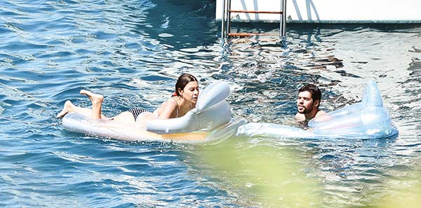Yedi aylık hamile olan ünlü oyuncu Seda Bakan ve müzisyen eşi Ali Erel de tatil sezonunu Bodrum'da açtı. Geçtiğimiz hafta Gündoğan'daki Galimera Beach'in iskelesinde görüntülediğimiz çift, gün boyu deniz keyfi yaptı. Hamile eşinin üzerine titreyen ali Erel, denize girerken eşinin koruyup kolladı.