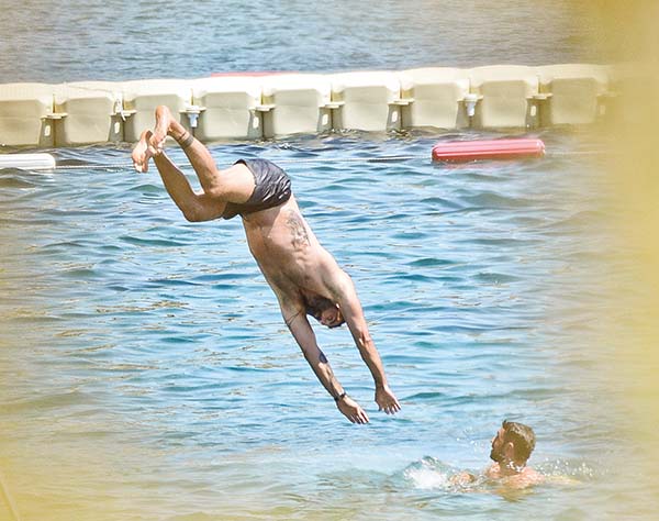 Volkan Demirel eşi Zeynep ile kızları Yade ve Yeda ile Bodrum'da tatil yapıyor. Geçtiğimiz hafta arkadaş gurubuyla Moon Beach'e gelen Volkan Demirel iskelede adeta şov yaptı. Volkan iskelede ters takla ve balıklama stilindeki marifetlerini gösterdi. Eşi Zeynep Demirel ise arkadaşlarıyla denize girip, eşinin eğlencesini izledi.