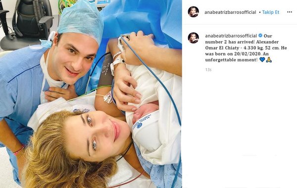Ünlü model dünyaya getirdiği bebeği ve eşi Karim El Chiaty ile çekilen pozunu sosyal medya safyasından paylaştı. Barros paylaşımında "İki numaramız geldi. Alexander Omar El Chiaty, 4 kilo 330 gram, 52 cm. "20-02-2020'de doğdu. Unutulmaz an" mesajını yazdı.