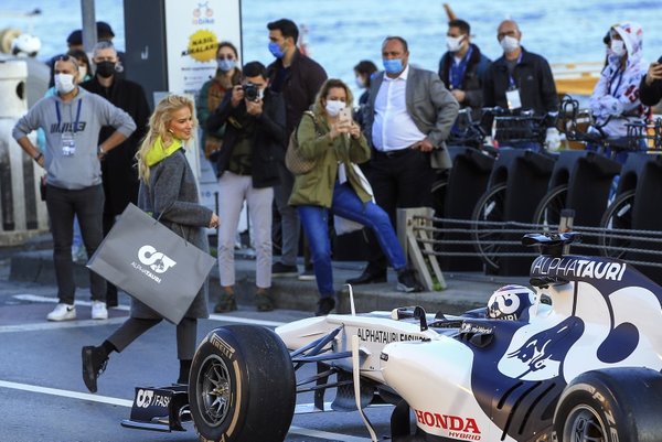 Arnavutköy sahil hattında gerçekleşen çekimlerde AlphaTauri takım aracı pilotu Pierre Gasly ile kamera karşısına geçen Esmersoy, doğal güzelliğiyle Formula 1 araçlarını gölgede bıraktı.