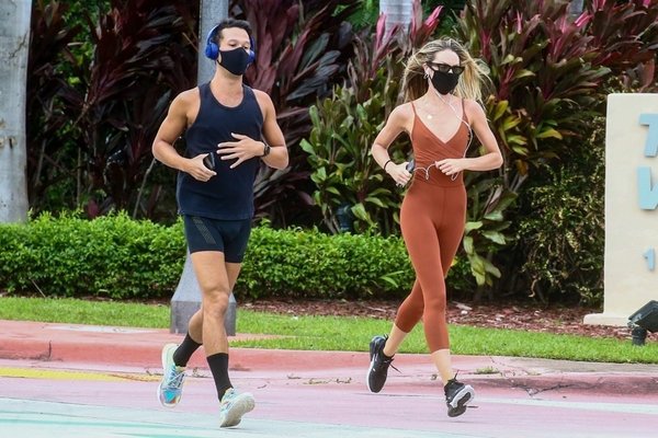 32 yaşındaki modele koşu sırasında kişisel eğitmeni de eşlik etti. İkilinin spor yaparken bile corona virüsten korunmak adına taktıkları maskeyi çıkarmadığı görüldü.