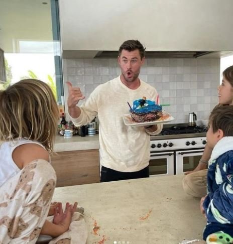 Önceki gün 38 yaşına giren üç çocuk babası oyuncu, çocuklarının kendisi için yaptığı pastanın fotoğrafını yayınladı. Thor filminin yıldızı, paylaşımında, "Tüm doğum günü mesajlarına teşekkür ederim. Ailemle destansı bir gün geçirdim ve çocuklarımın, dev şekerli neşe yığınına yumulmadan önce yaptıkları bu harika pastanın yüzde 75'ini yemeyi başardım. Hepinizi seviyorum" notunu yazdı.