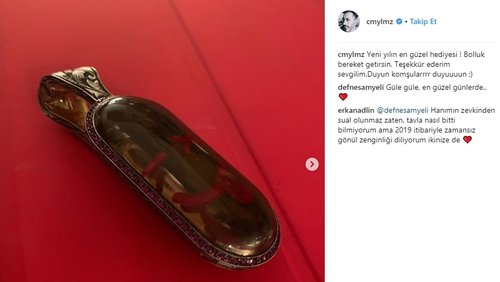 Ünlü Komedyen, hediyeyi instagram'da paylaşarak, "Bolluk ve bereket getirsin. Teşekkür ederim sevgilim. Duyun komşular, duyun" diyerek, Samyeli'ye aşkını bir kez daha ilan etti.