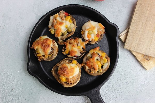 Bir fırın tepsinin içerisine sapları alınmış mantarları ekleyin. Mantarların iç kısmına mısırlı ton salatayı da ekleyip üzerlerine rendelenmiş kaşar peynirini serpin. Tüm malzemeler bitene kadar aynı işlemi uygulayın. Ardından önceden ısıtılmış 180 derecelik fırında üzerine kızarana kadar pişirip servis edebilirsiniz.
