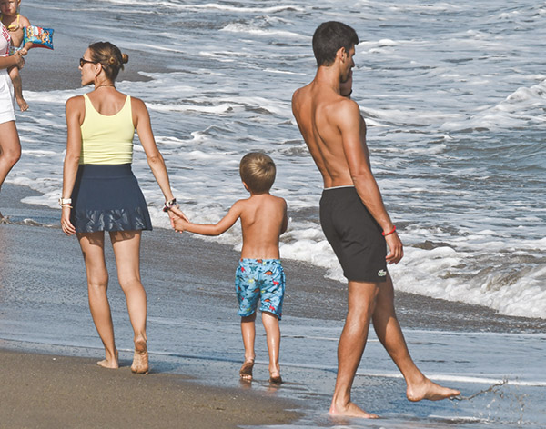 Tenis dünyasının yıldızı Novac Djokovic, zorlu ve başarılı geçen turnuva döneminin ardından eşi Jelena ve çocukları ile İspanya'nın tatil destinasyonlarından Marbella'da dinleniyor. Sahilde yürüyüş yaparken objektiflere yansıyan sırp tenisçinin, eşiyle romantik anları da objektiflere yansıdı.