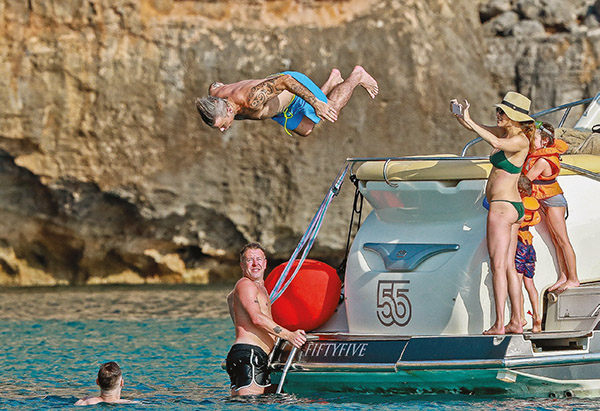 İngiliz şarkıcı Robbie Williams, eşi Ayda Field ve çocuklarıyla Ibiza'da tekne tatili tercih edenlerden... Çocuklarıyla oyunlar oynayan ve eğlenceli anlar geçiren Robbie Williams, cesur atlamalarıyla da görenleri hayran bıraktı. Bu atlamaları güzel eşi Ayda Field, kameraya çekmeyi unutmadı.