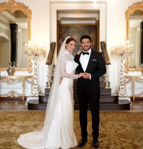 Ebru Şallı nikahta, Cengiz Abazoğlu imzalı özel tasarım bir gelinlik giydi. Uğur Akkuş ise Tom Ford imzalı damatlığı tercih etti.