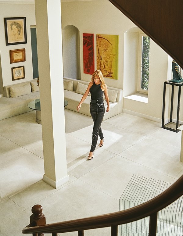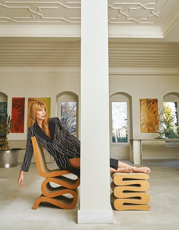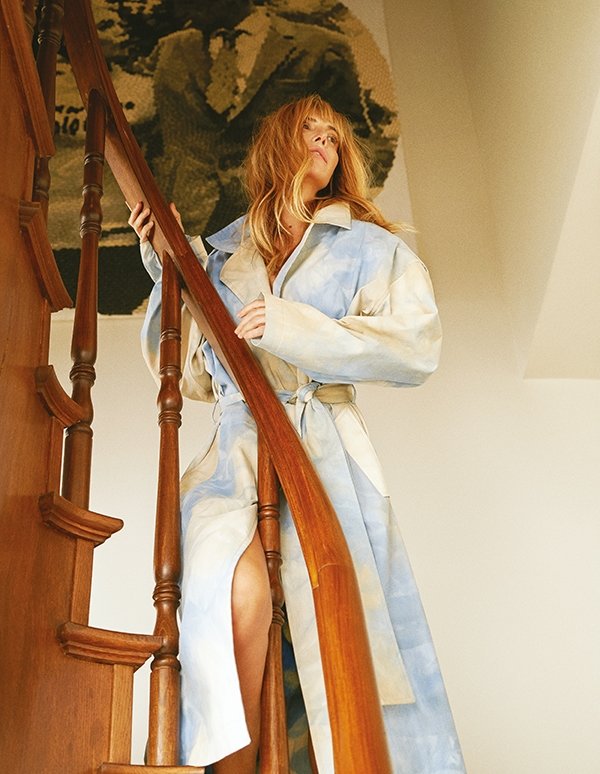 Elif için T.A.G.G. arşivinden özel bir seçki yaptık. Tuğba Ansen ile birlikte ortak bir silüet üzerinde ilerledik. Jean takımdan, kapitone anorak yeleğe, tafta ceketten, deri eteğe, şifon pantolondan, koton yağmurluğa çok farklı malzemelerden oluşan ürünler karması yarattık. Elif'i kendi yaşam alanında, sanat eserleriyle döşeli evinde, farklı ama dinamik yeni formlarla bir araya getirdik.