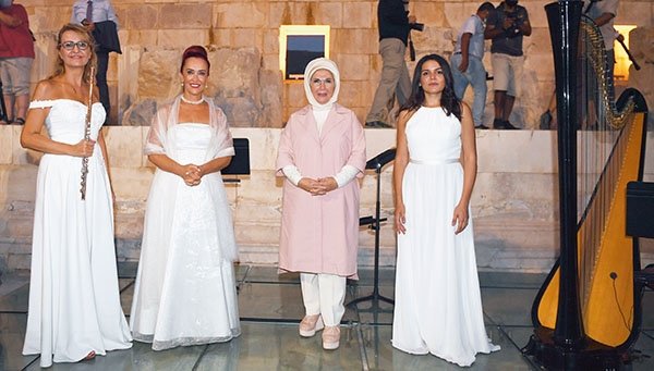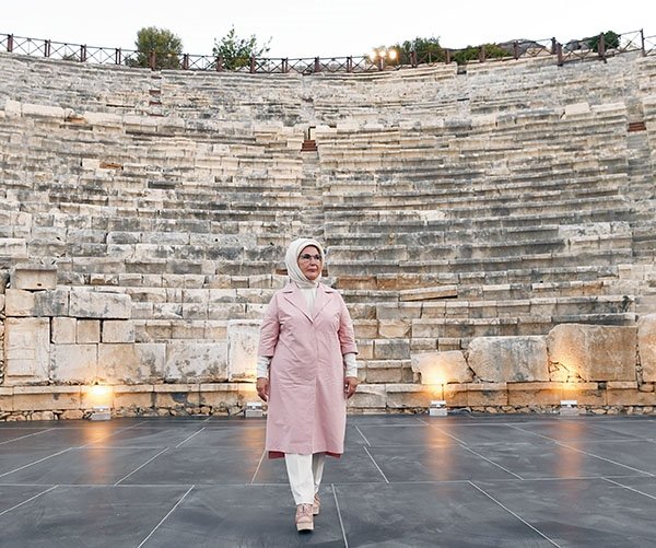 Emine Erdoğan ve Bakan Murat Kurum ile beraberindekiler, plajdaki programın ardından '2020 Patara Yılı' kapsamında Patara Antik Kenti'ni ziyaret etti. Antik kentteki araştırmaların başkanı Prof. Dr. Havva Işık'tan kazı ve restorasyon çalışmalarına dair bilgi alan Erdoğan, dünyanın ilk meclis binası olma özelliğine sahip tarihi yapıyı inceledi. Erdoğan daha sonra Patara Antik Kenti'ni tanıtmak ve turizme katkı sağlamak amacıyla üç kadın sanatçının kurduğu 'Trio Patara' grubunun kendisi için verdiği dinletiyi izledi.