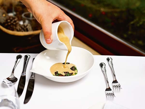 Kestanelerin çıkmasını dört gözle bekledik, sonunda geldiler. Trüf kokulu Zonguladak kuzu kestanesi çorbası, sonbahar mönümüzün vazgeçilmezleri arasında. Kestanenin kavrulmuş aroması trüf ve kuzu göbeği mantarı ile birleşince orataya muazzam bir lezzet çıkıyor. Sonbahar ile ilgili en büyük beklentimizden birisi de porçini mantarlarının çıkması, bu sene oldukça fazla mantar çıktı. Bakır tavada yabani porçini mantarları, yabani mantarların lezzetini en üst seviyede deneyimleyebileceğiniz çok özel bir tabak. Tatlımız ise incir yapraklı dondurma. İncir ağacı yaprağı aromatiktir, normalde parfüm veya kolonya yapımında değerlendiriliyor. İncir yaprağı, tarçın, badem, zeytinyağı birleşince sanki çok hoş bir parfüm yiyormuşsunuz hissiyatı veriyor.