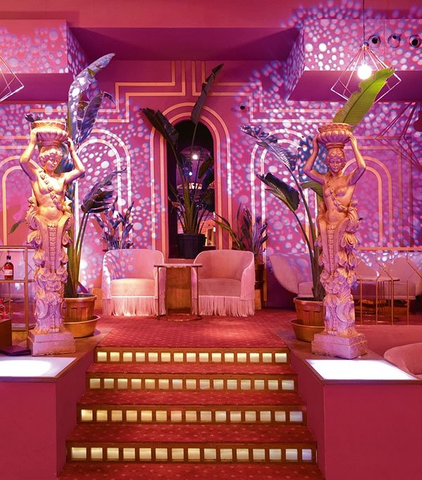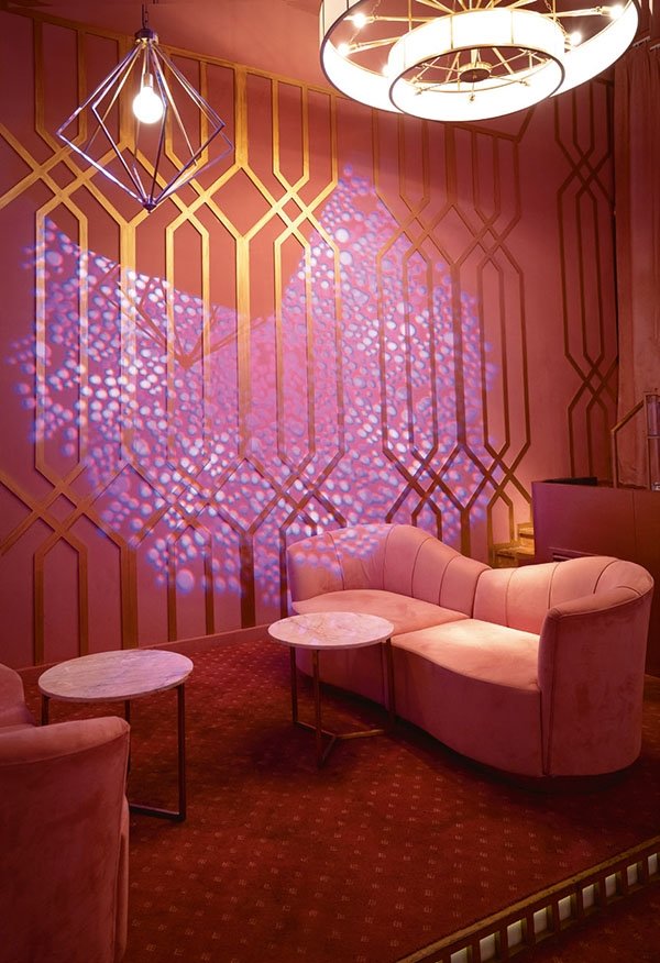 Esra T: Pembenin üç-dört tonunu kullandık. Onunla kombinlenen yeşil çok dingin bir ton; benim çok sevdiğim bir renk. Dolasıyla pembe, gece ışıkla birleşince, bambaşka bir mekan ortaya çıkıyor.