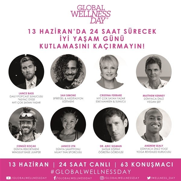 Tüm dünyanın derinden etkilendiği pandemiyle birlikte, dünyanın dört bir yanındaki insanlar iyi ve sağlıklı kalmanın yollarını arıyor. 13 Haziran 2020, Cumartesi günü, dokuzuncusu düzenlenecek olan Global Wellness Day (GWD), fiziksel, ruhsal ve zihinsel sağlığın önemini vurgulamak için, tarihinde ilk kez 24 saatlik canlı yayın programıyla gerçekleşecek. "Bir gün, tüm yaşamınızı değiştirebilir!" mottosuyla, Yeni Zelanda'da başlayıp, Hawaii'de sonlanacak olan etkinliğin ana temaları; zihinsel sağlık, stres, bağışıklık sistemi, sağlıklı beslenme, evde spor, sevgi ve şefkat seçildi.