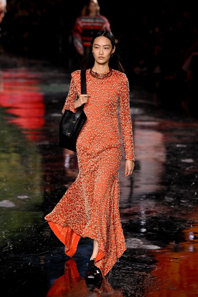 Cesur mercan tonları sezon podyumunda turuncuya yakın parlak kırmızı tonlarında karşımıza çıkıyor. Chanel ve Balenciaga’nın koleksiyonlarında temel renkler arasında ön planda yer alıyor. Katmanlı elbise ve etekler başta olmak üzere, gece kıyafetlerinde ışıltılı ve şık görünümlerde kullanılıyor.