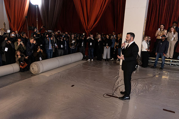 Jimmy Kimmel, basına hitap ederken, Will Smith'in geçen yıl Oscar töreninde Chris Rock'a tokat atmasına atıfta bulunarak, "İnsanlar 'Bu yıl herhangi bir sorun olacak mı? Bu yıl herhangi bir şiddet olacak mı?' diye soruyor. Kesinlikle olmamasını umuyoruz. Kırmızı halı yerine şampanya rengi halıda karar kıldık ki kan dökülmeyeceğine dair ne kadar kendimize güvendiğimizi gösterelim" şeklinde espri yaptı.