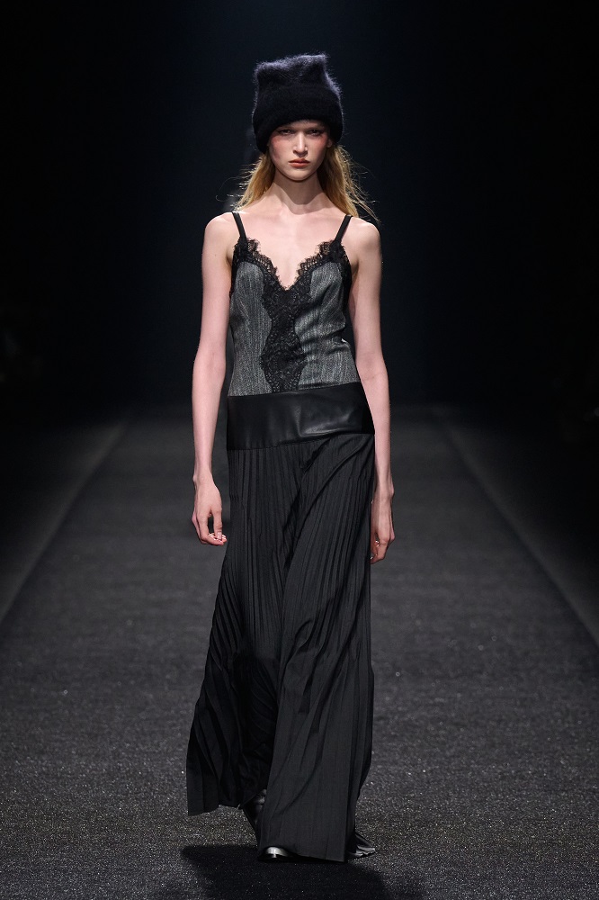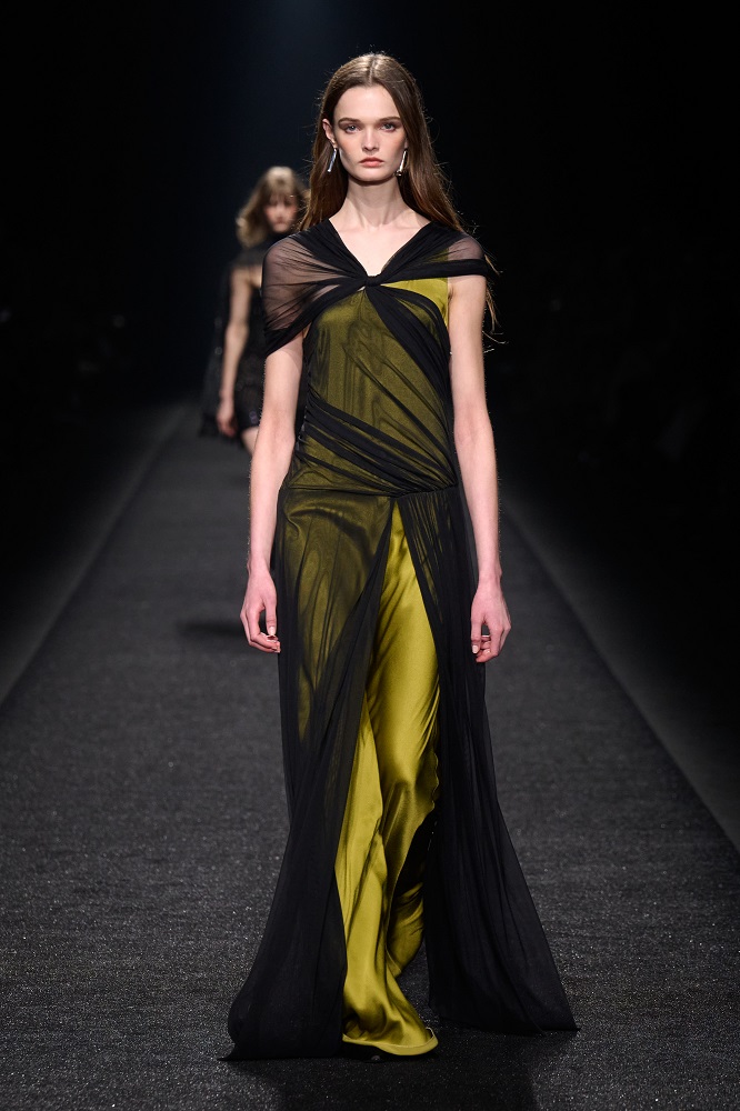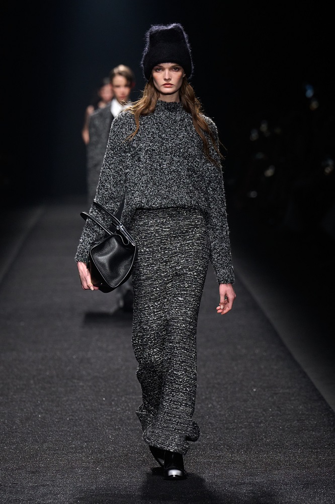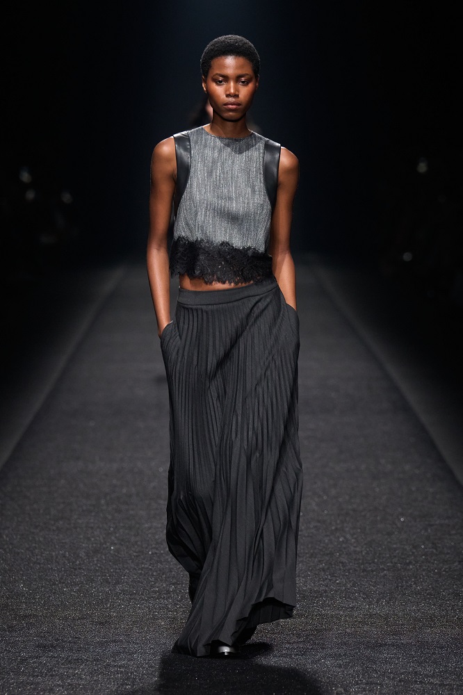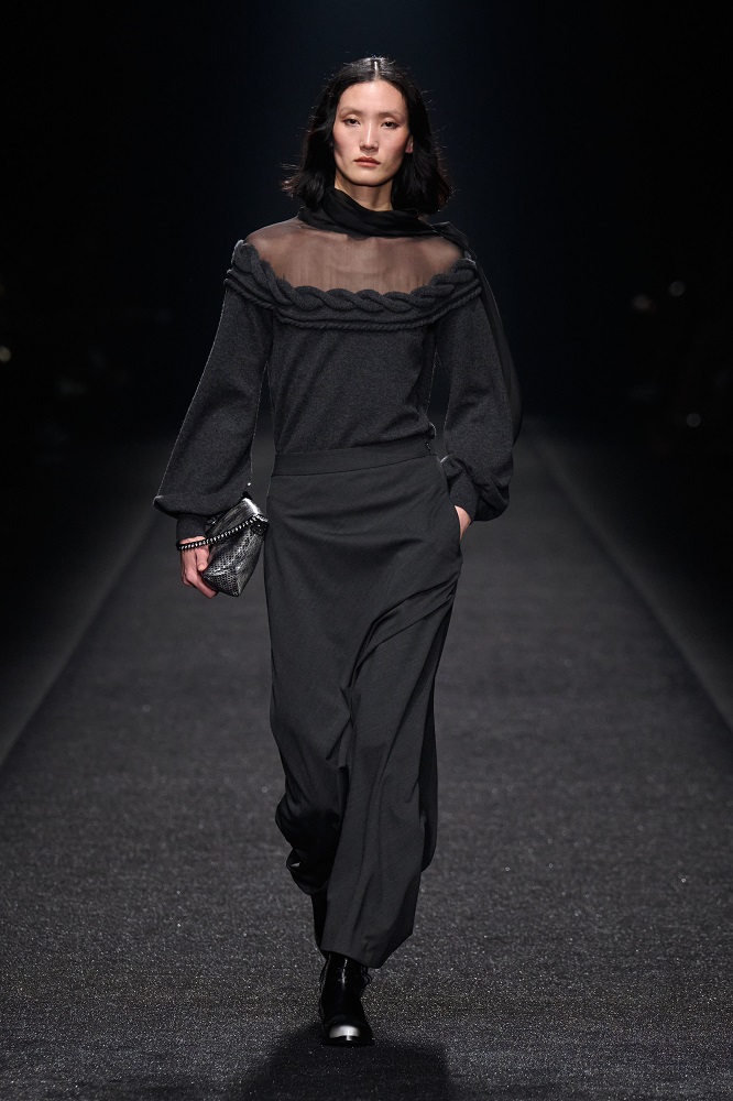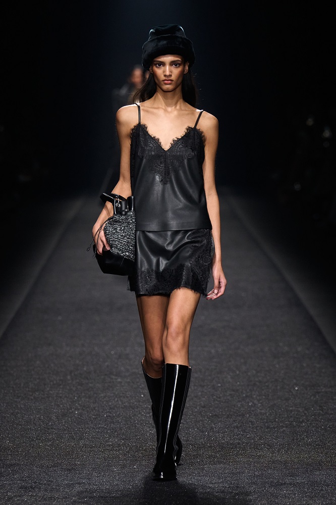Alberta Ferretti, pragramatizm ve şiir arasındaki dengeyi her zaman araştırmıştır. Gerçekçicilik duygusundan vazgeçmeden sihirlerin peşinden koşar, ayakları yere basarken hayal kurar. Bu sezon kullanılan materyallerdeki zıtlıkta tasarımlar hayat buluyor. Feminem, maskülen, konforlu, ışıltılı, şifon, pazen, dantel... Koleksiyon Alberta için değerli olan motifleri, temaları bir arada sunuyor. Birçok farklı şekilde giyilebilen tasarımlar, vücudu saran paltolar, deri ve dantel buluşması...