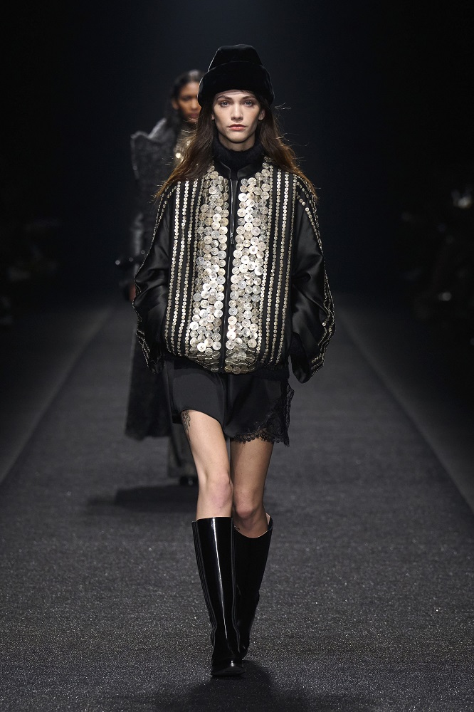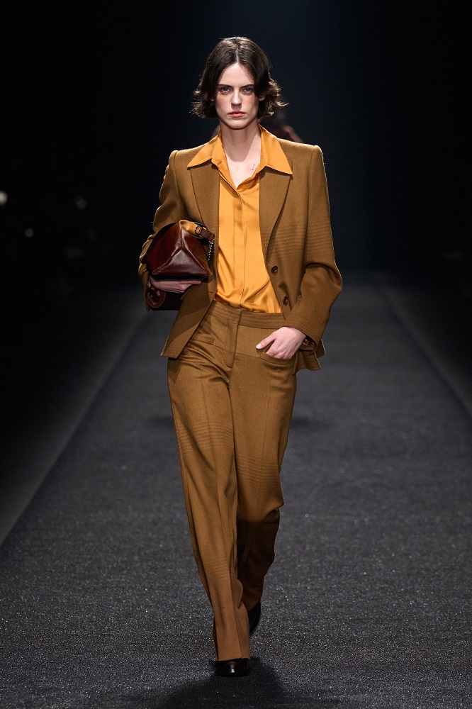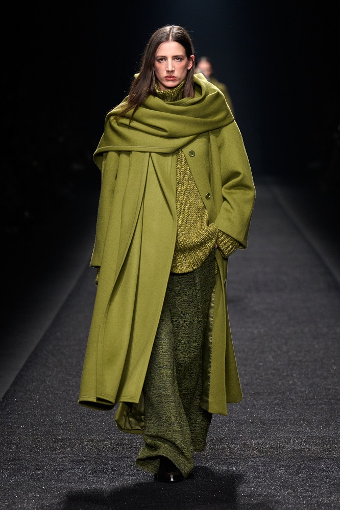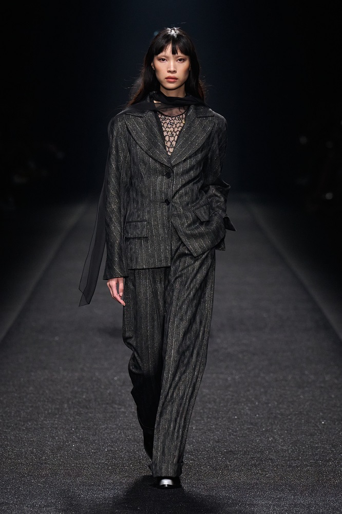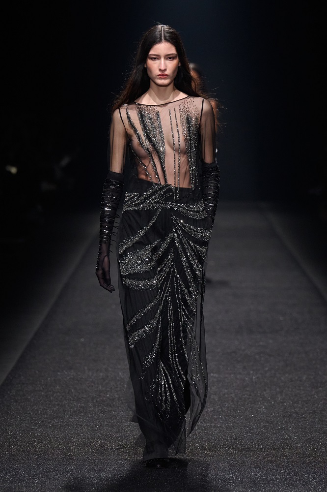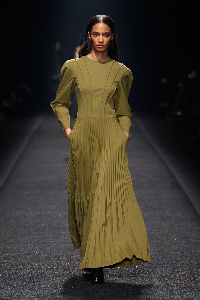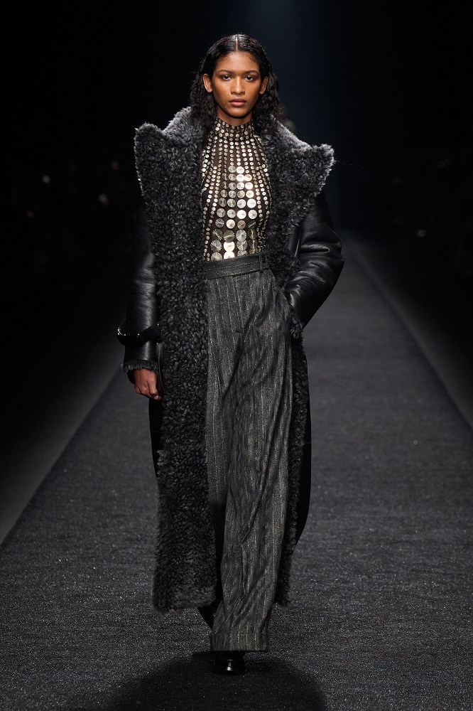 Alberta Ferretti, pragramatizm ve şiir arasındaki dengeyi her zaman araştırmıştır. Gerçekçicilik duygusundan vazgeçmeden sihirlerin peşinden koşar, ayakları yere basarken hayal kurar. Bu sezon kullanılan materyallerdeki zıtlıkta tasarımlar hayat buluyor. Feminem, maskülen, konforlu, ışıltılı, şifon, pazen, dantel... Koleksiyon Alberta için değerli olan motifleri, temaları bir arada sunuyor. Birçok farklı şekilde giyilebilen tasarımlar, vücudu saran paltolar, deri ve dantel buluşması...
