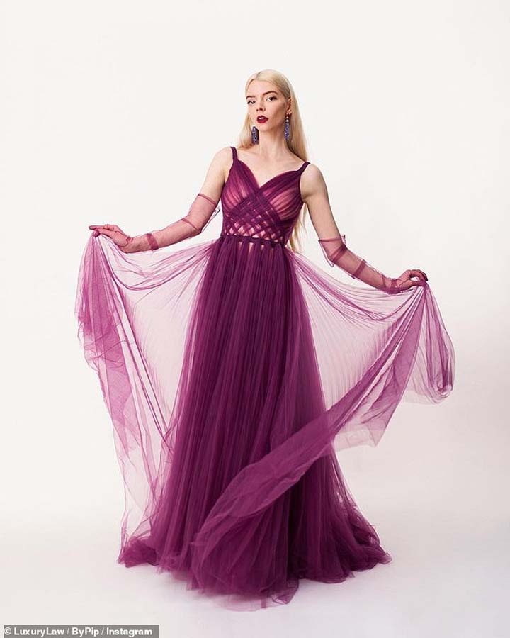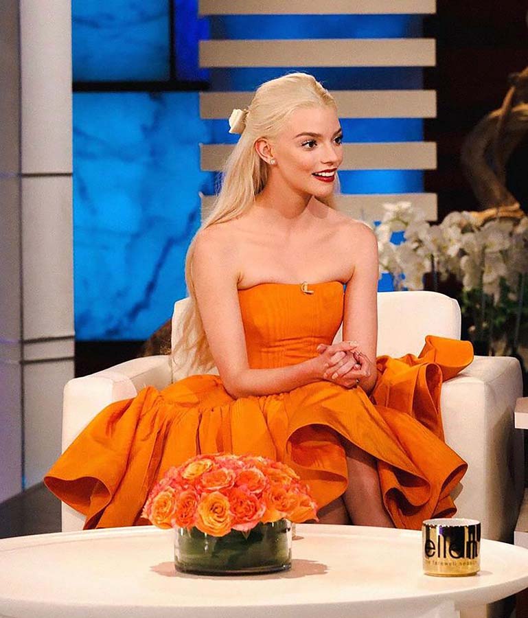 İtalyan sanatçı Pietro Ruffo'nun altın motiflerle dekore ettiği atmosferde yapılan çekimde Anya Taylor-Joy, gözalıcı bir ışıltılı mini elbise tercih etti.