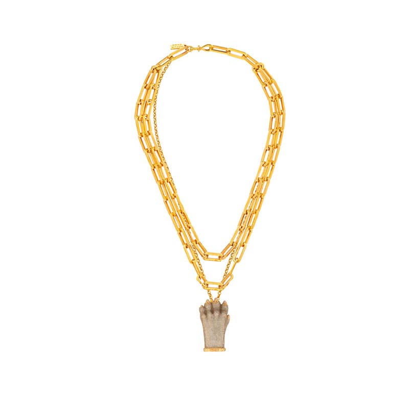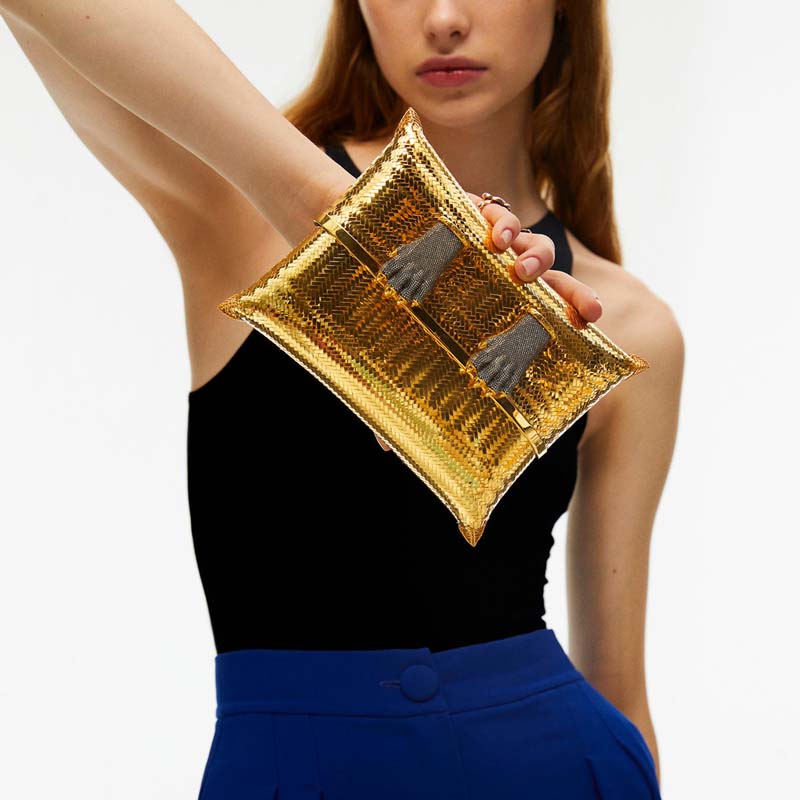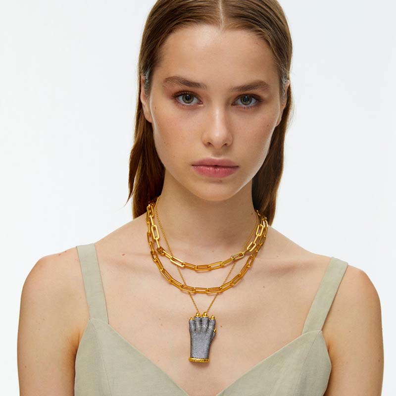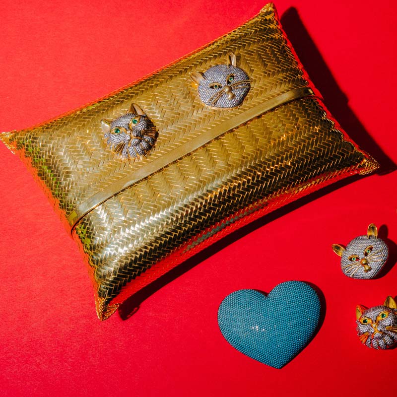 Headpiece, çanta, bileklik, kolye, küpe ve broşlardan oluşan koleksiyon diğer koleksiyonlarda olduğu gibi bronz üzeri altın kaplama ve kristallerle hayat buluyor.
