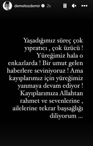 Demet Özdemir, tekrardan hayatını kaybedenler için başsağlığı diledi.