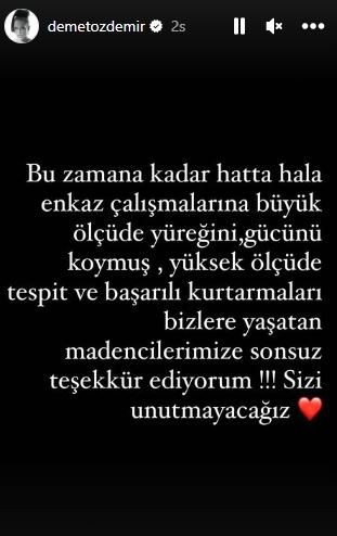Sosyal medya hesabından duygu yüklü bir paylaşım yapan Demet Özdemir, deprem bölgesine giden maden işçilerinin büyük özverisi ve çalışmaları için teşekkür etti.