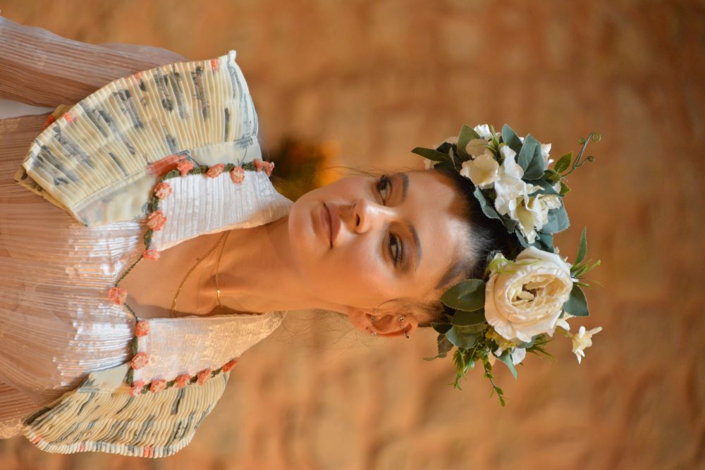 Kurt “Doğanın Uyanışı/Hıdırellez” Sergisi’nde Rumeli/Balkan kıyafetlerini, Osmanlı kıyafetlerinde en çok kullanılan çiçek olan lale figürü ile birleştiriyor.