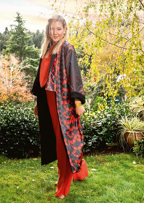Modada sürdürülebilirlik üzerine son yıllarda çok fazla görüş ortaya atılıyor. Röportajımızı sonlandırmadan önce; sizin sürdürülebilir modaya katkı için yaptığınız bir şeyler var mı? Sürdürülebilirlik deyince ilk akla çevrenin korunması geldiği gibi sürdürülebilir moda deyince de kullanılan her malzemenin kendiliğinden yenilenebilmesi ve doğaya dönebilir olması olarak tanımlayabilirim. Sürdürülebilir bir tasarımı ilk defa 2020 yaz kimono koleksiyonum ile hayata geçirmeye başladım. Jennifer Lopez için tasarladığım kimonoydu... Kumaşlar hassas kumaşlar olmakla birlikte özellikle yıkama talimatları üzerinde hassasiyet gösteriyorum. Bundan sonra da sürdürülebilir modaya uygun boyama süreçlerini ve moda malzemelerini öncelik almaya çalışacağım. Özellikle kimonolarımın ve elbiselerimin kumaş kalitesi vegandır. Kumaş cinsi cuprodur; yani pamuğun çekirdeğinin liflerinden oluşmaktadır. GRC (Global Recycle Certificate) sertifikalıdır. Toprağa gömüldüğünde 3 ay içerisinde kumaşın yüzde 80'i kaybolmaktadır. Bu kumaşımız dünyanın ilk vegan kumaşını üreten tedarikçiye aittir.