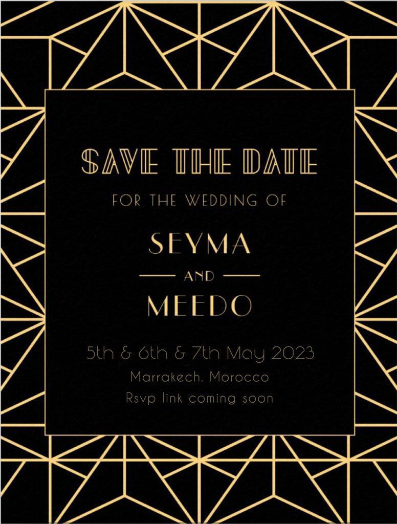 Şeyma Subaşı ‘Save the Date’ yani ‘tarihi kaydet’ başlığıyla ilk davetiyeleri dostlarına göndermeye başladı. Tamamı İngilizce olan ve “Şeyma ve Meedo’nun düğünü için tarihi kaydet” yazan davetiyede yer alan düğün tarihi; 5-6-7 Mayıs 2023. Yer ise; Marrakech… Yani Fas’ın Marakeş şehri. Asıl davetiyeleri daha sonra gönderecek olan Şeyma Subaşı, şimdi heyecanla evleneceği tarihi bekliyor.