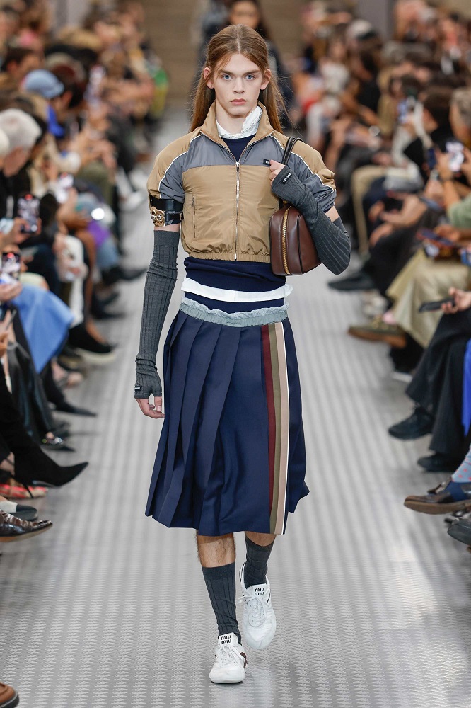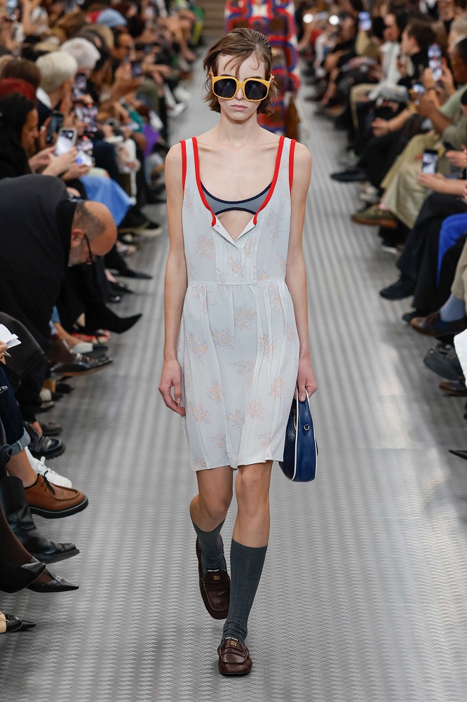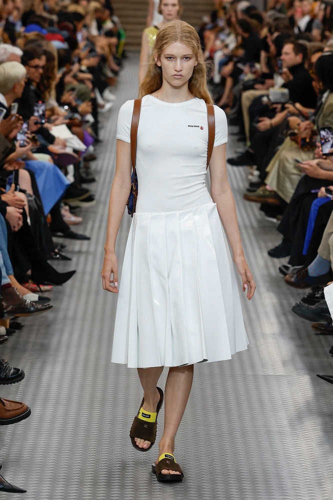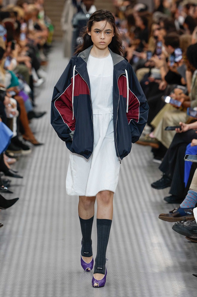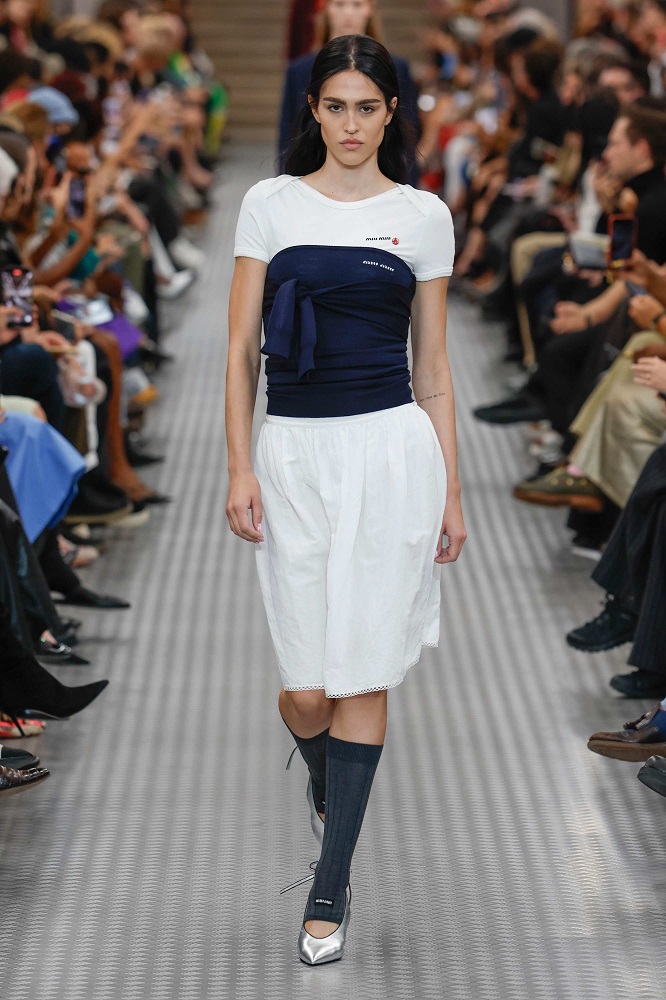 Eğer 2024 Sonbahar/Kış koleksiyonu insanların hayatlarında yaşadıkları, hissettikleri ve deneyimledikleri çeşitliliği yansıtıyorsa; Miu Miu 2025 İlkbahar/Yaz koleksiyonu, bireylerin henüz toplumsal normlar ve beklentilerle şekillenmediği erken gençliği, kişinin öz kimliğiyle en yakın olduğu mutlak gerçeklik dönemi olarak inceliyor. Her birey gerçek hislerini ve düşüncelerini gizlemeyi öğrenmeden önce kendine ve ideallerine karşı dürüsttür. Aşırı uyarılma ve bilgi yüklenmesinin olduğu bir çağa tepki olarak, giyimdeki sadelik, netlik ve kesinlik sunarak bireyin gerçek kimliğini ifade etmesine olanak tanıyor.