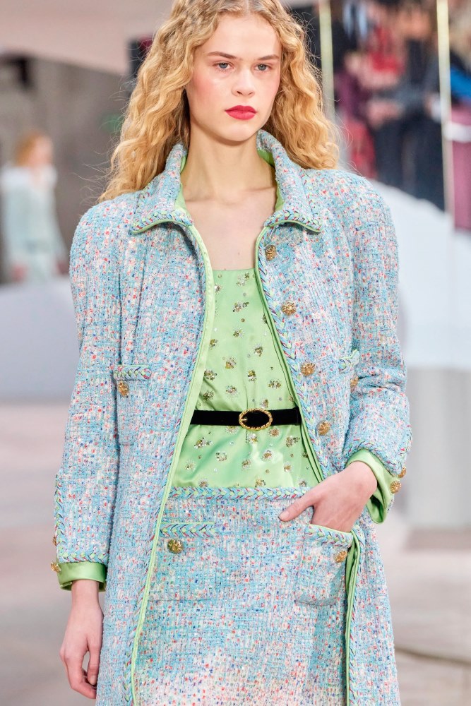 Chanel’in 2025 ilkbahar/yaz haute couture koleksiyonu, markanın 110 yıllık haute couture mirasını onurlandıran bir koleksiyon. Coco Chanel’in “Siyah her şeyi kapsar” sözüne rağmen, bu koleksiyon pastelden canlı renklere uzanan bir renk paletine sahip.