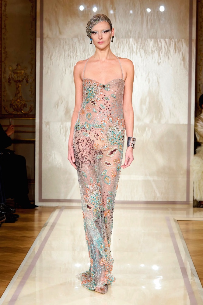 Lüks ve zarafetin öncüsü olan Armani, gösterişli kumaşlar, taş işlemeli ceketler ve parıltılı gece elbiseleriyle klasik estetiğini yeniden tanımladı. İnci detaylarının öne çıktığı parçalar, zarafetin sembolü olarak koleksiyonun ana hatlarını oluşturdu.