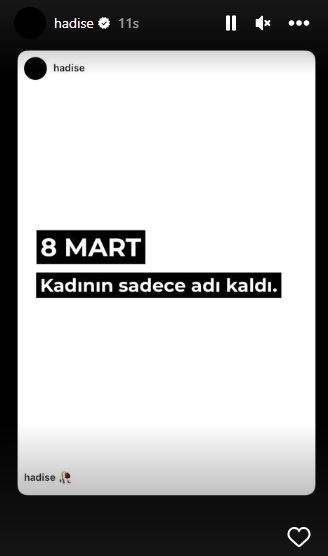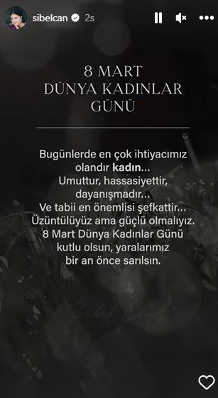 "8 Mart Dünya Kadınlar Günü... Bugünlerde en çok ihtiyacımız olandır kadın... Umuttur, hassasiyettir, dayanışmadır ve tabii en önemlisi şefkattir... Üzüntülüyüz ama güçlü olmalıyız. 8 Mart Dünya Kadınlar Günü kutlu olsun, yaralarımız bir an önce sarılsın..."