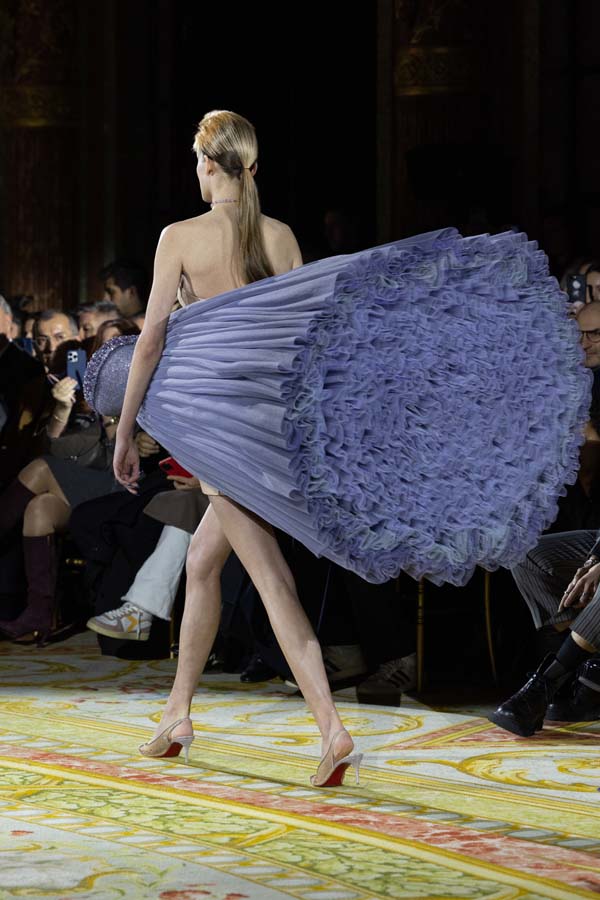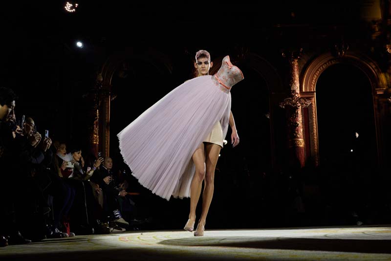 Balo elbiselerinin defilede adeta yerçekimine karşı koyduğunu söylemek mümkün. Sosyal medyada binlerce kez paylaşılan defile görüntüleri kimileri tarafından 'absürd' ve 'çılgın' olarak nitelendirilirken bazı kesimler, markanın bu deneysel tasarımlarını övmekten kendini alamadı.