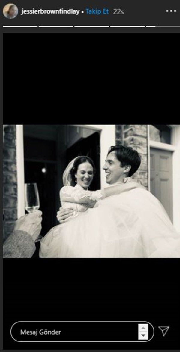 Oyuncu düğün günü çekilen fotoğraflarını da sosyal medya hesabından paylaştı. Jessica Brown Findlay'in paylaşımlarında da görüldüğü gibi corona virüse tedbiri olarak çiftin dini evlilik töreninin yapıldığı kilisede neredeyse hiç davetli yer almadı.