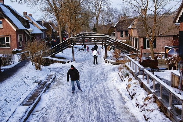 Hollanda'nın kuzeyinde Overijsel bölgesinde bulunan ve UNESCO Dünya Mirası Listesi'nde yer alan Giethoorn, kanalları ve huzurlu atmosferiyle dikkat çeken küçük bir kasaba. Bu masalsı kasabayı, tekne ile gezebiliyorsunuz, hatta bazı evlere sadece kanal aracılığıyla ulaşabiliyorsunuz. Postacılar bile mektupları tekne ile yanaşarak dağıtıyor. Yaklaşık 3 bin 500 bin nüfuslu kasabada, 180 köprü yer alıyor. Her bir köprü bir evin gidiş yolu üzerinde ve zaten bu köprülerin sahipleri de genelde ev sahipleri. Giethoorn, 13. yüzyılın ilk yarılarında Akdeniz'den gelen sığınmacılar tarafından kurulmuş. Kasabaya yerleşen ilk insanlar, tufanda ölen yabani keçilerin boynuzlarını bulmuşlar ve buraya Flemenkçe'de 'keçi boynuzu' anlamına gelen Giethoorn adını vermişler. Kasabanın kendine has evleri var. Çatıları sazdan, ince tuğlalı evlerin kapı ve pencereleri de çok özgün. Halkının çiftçilik ve turizmden geçindiği Giethoorn, huzur arayanlar için biçilmiş kaftan. Köyde duyacağınız tek ses, ördek ve kuş sesleri... Kanallarda dolaşan tekneler bile bu sessizliği bozmuyor çünkü hepsi elektrikli motorla çalışıyor. Bu arada kasaba motorlu araç trafiğine de kapalı. Giethoorn'da Hollandalıların geleneksel ulaşım aracı bisikleti de yaygın olarak kullanılıyor, siz de bisikletle kasabayı turlayabilirsiniz.