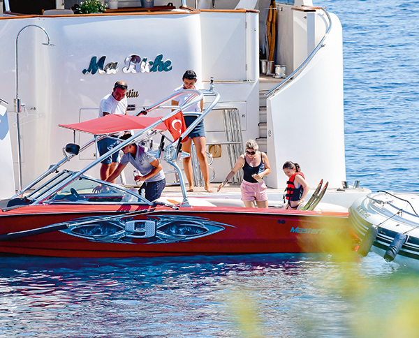 Hacı Sabancı ile sevgilisi Nazlı Kayı, Bodrum'a demirledikleri teknelerinde tatil yapıyor. Yalıkvak'ta objektifimize yansıyan çift, arkadaşlarıyla birlikte keyifli saatler geçirdi. Denize girmeyi tercih etmeyen Nazlı Kayı, gün boyu güneşlenerek kitap okudu. Arkadaşlarıyla birlikte bota binerek tekneden kısa süreliğine ayrılan Hacı Sabancı ise daha sonra kız arkadaşı Nazlı Hanım'ın yanına geldi.