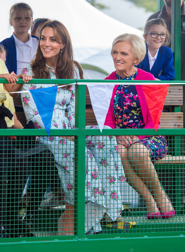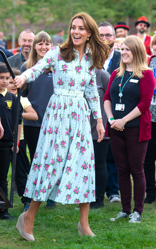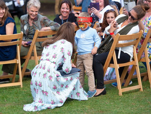 Kısa bir konuşma yapan Düşes, daha sonra da bahçede çocuklarla birlikte oynadı. Elbisesi de floral desenleriyle duruma çok uygun ve Düşes'in favori tasarımcılarından Emilia Wickstead'e ait.