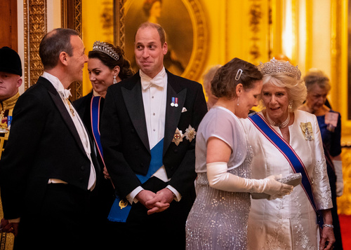 Çift, Kraliçe 2. Elizabeth, Prens Charles ve Düşes Camilla ile birlikte yaklaşık bin kişinin katıldığı resepsiyonda ev sahipliği yaptı.
