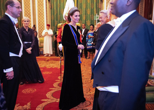 Kate Middleton gece için en sevdiği modacılardan biri olan Alexander McQueen imzalı lacivert kadife bir elbise giydi. Düşes'in elbisesi son derece sadeydi. Bu sade tacı, gerdanlığı ve küpeleri ön plana çıktı.