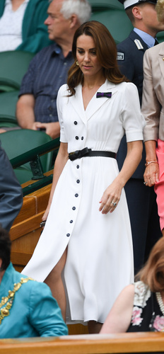 37 yaşındaki Kate Middleton, Suzannah kreasyonundan beyaz elbisesini Alexander McQueen kemeriyle tamamlayarak şıklığıyla turnuvada göz doldurdu.
