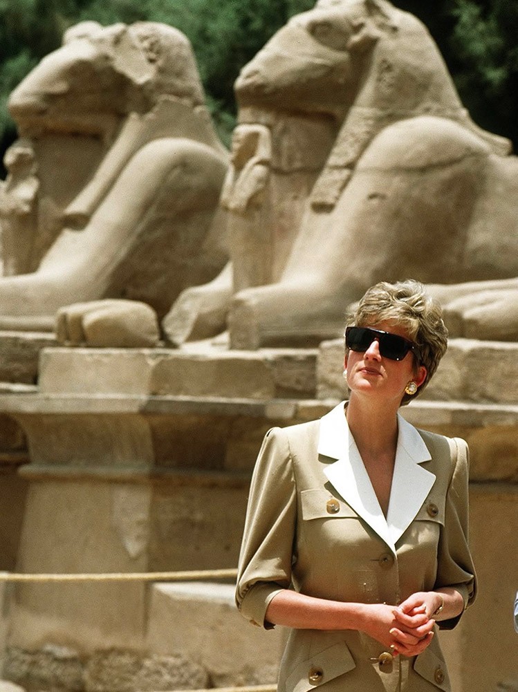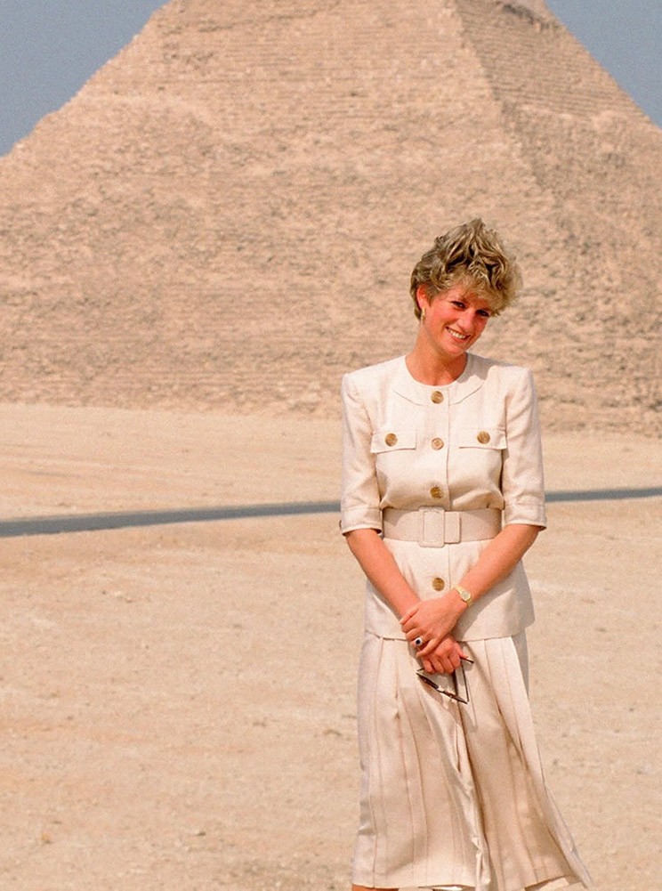 Giza Piramitleri’nin önünde çekilen bu kare, Diana’nın sade ama etkili stil anlayışının en net yansımalarından biri. Krem tonlardaki kusursuz kesim takımı, minimal aksesuar seçimi ve abartısız zarafetiyle, bulunduğu atmosferi kendi çizgisine taşıyor.