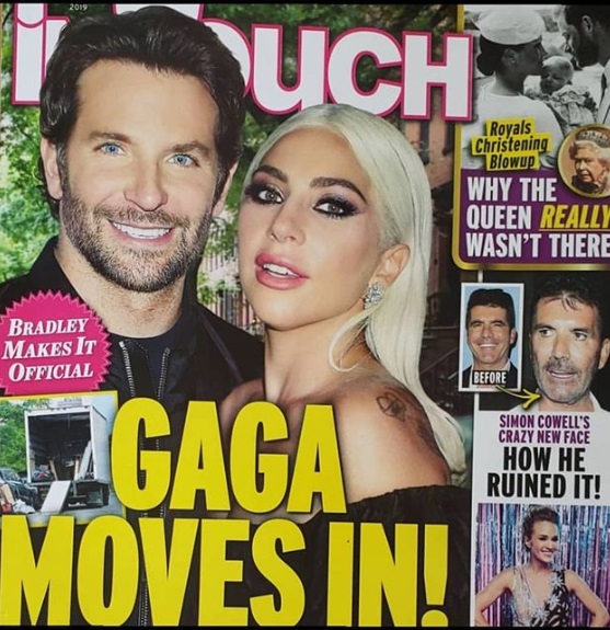 A Star is Born filminde başrolde yer alan Lady Gaga ve Bradley Cooper'ın yaklaşık bir yıldır aralarında bir yakınlaşma olduğu söylentileri dolaşıyordu ama ortada hiçbir kanıt olmadığı için iddia olarak kalıyordu. In Touch dergisi Lady Gaga'nın Bradley Cooper'ın evine taşındığı fotoğraflarını yayınladı.